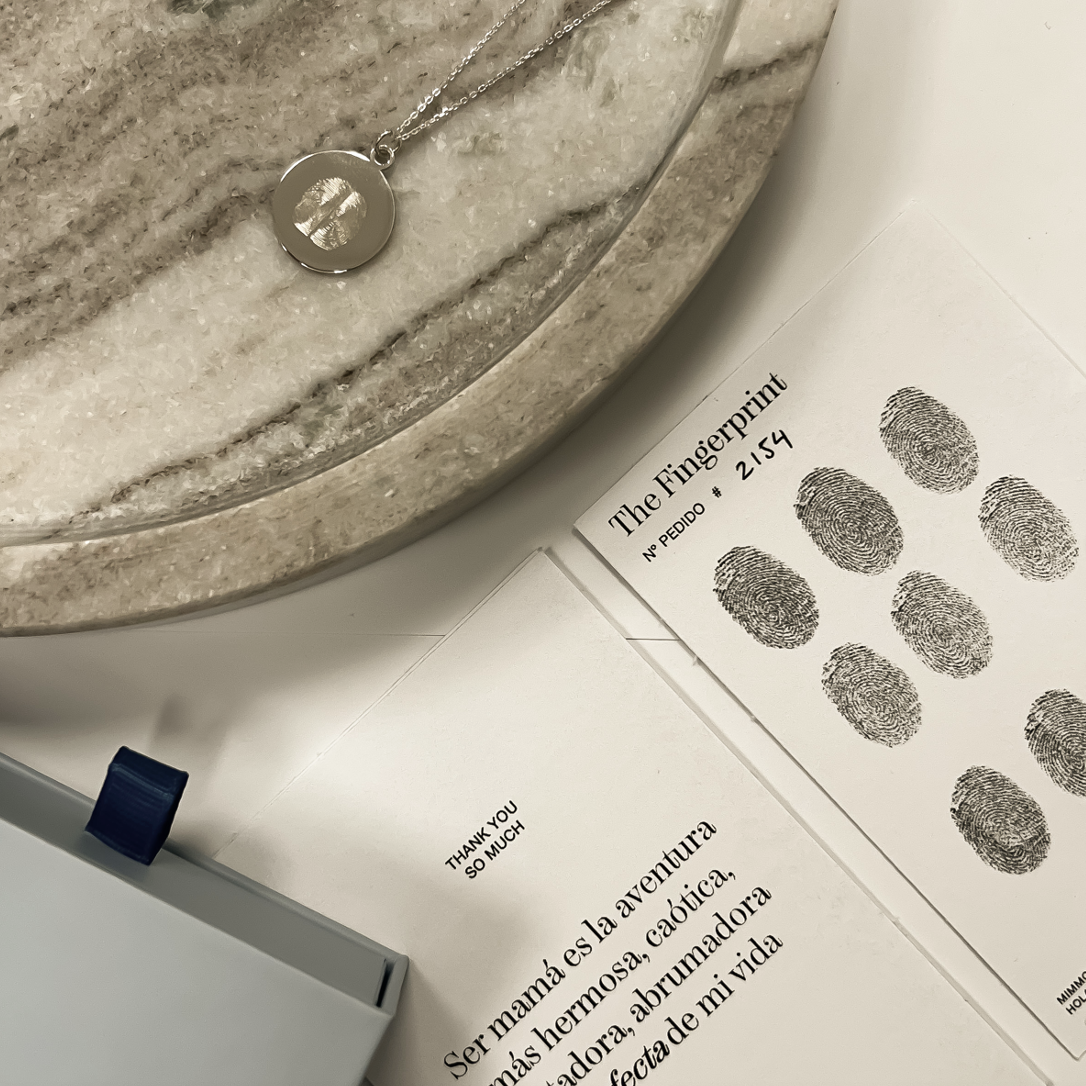 Con cada Fingerprint te damos la opción, incluida en el precio, de grabar el reverso de la medalla. Mándanos un nombre, las iniciales, una fecha, dos o tres palabras con un significado especial para ti, etc. Lo que más te guste.