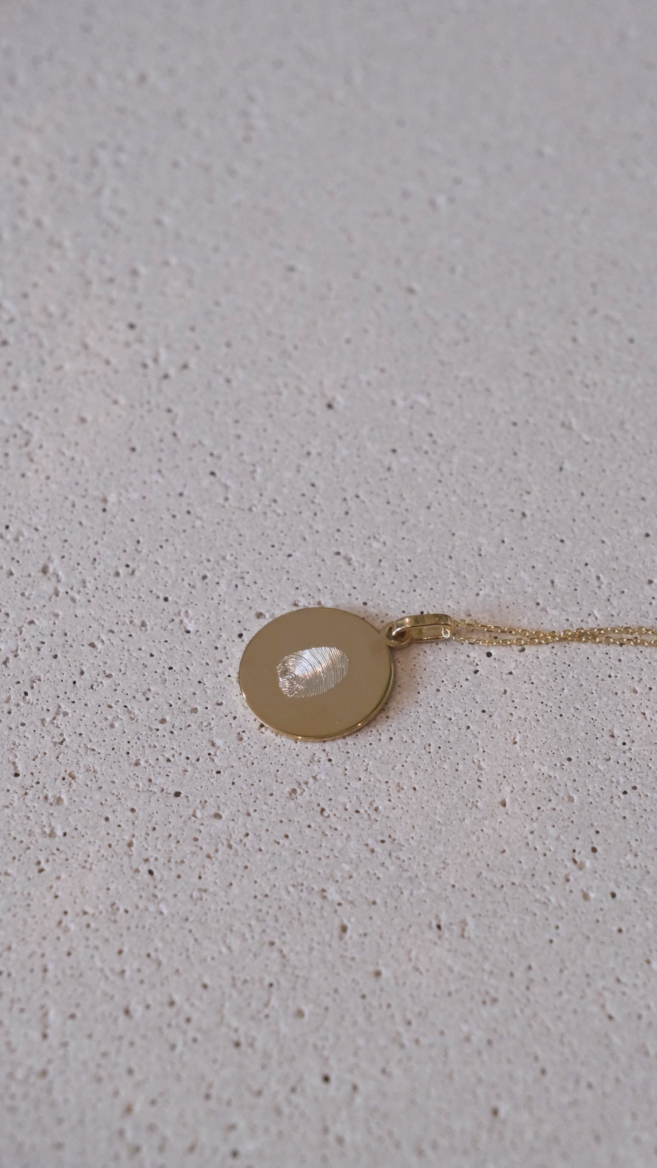 En cada joya encontrarás la huella/s en un lado y por el otro grabamos una inicial, su nombre o una fecha.
